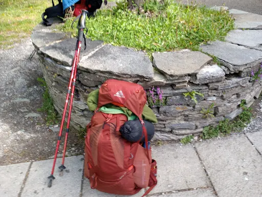 In town was a church that we stopped at. It was open and in the left of the sanctuary were memorials to pilgrims who had passed on. There was also a candlelit baptismal.